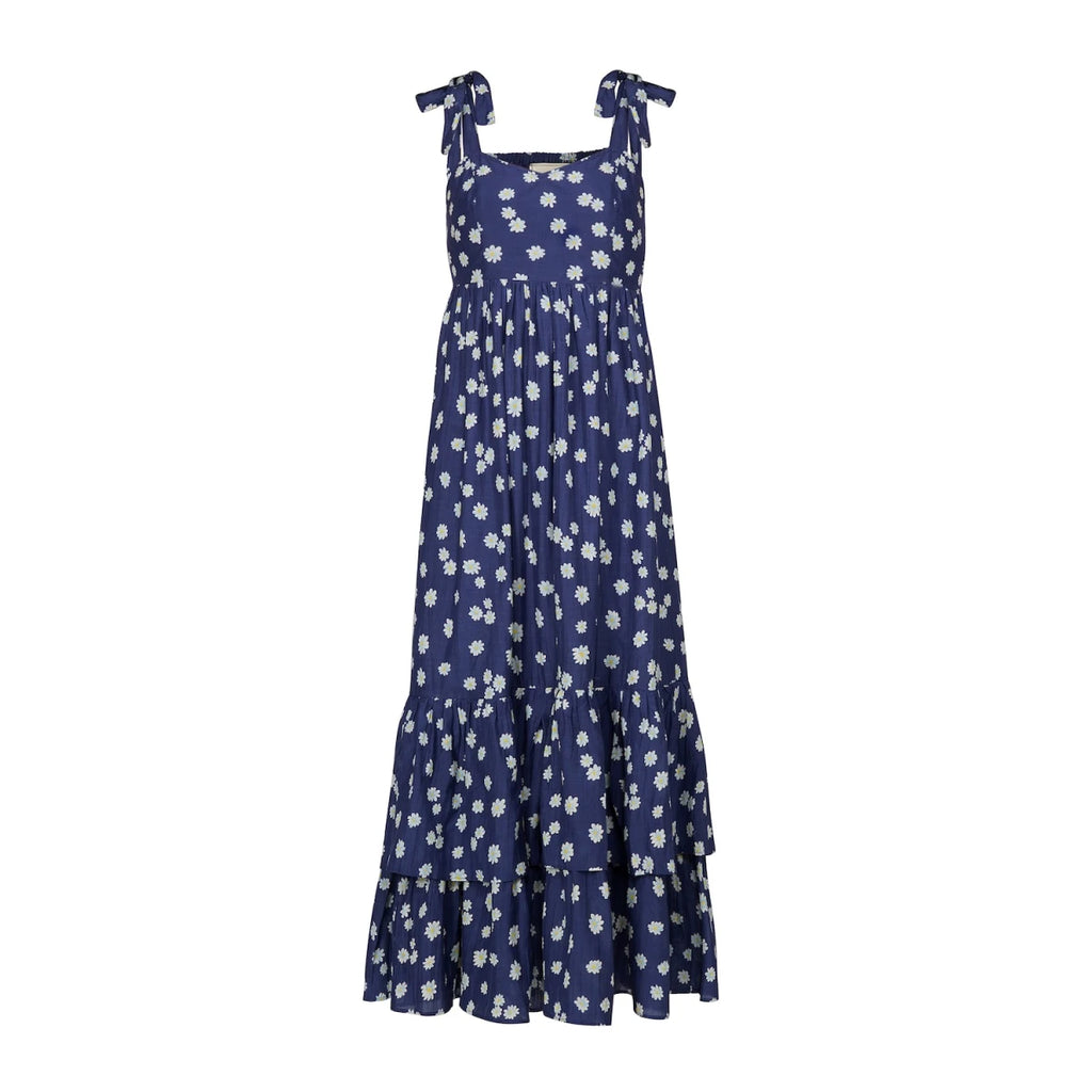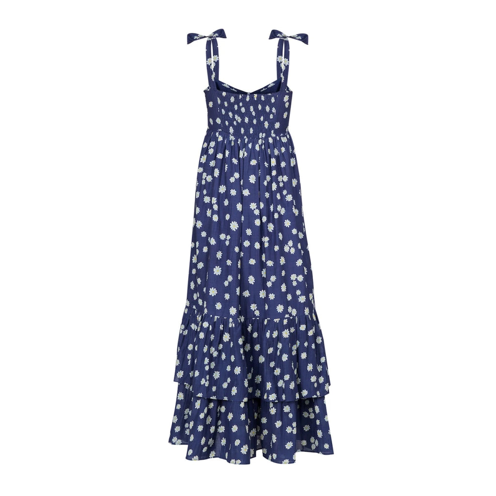 Ivory daisies printed on blue cotton, makes daisy day tiered dress very light and breezy. It comes with detachable shoulder ties, for days you feel a little extra. The bottom tiers add to the volume on movement. A kind of dress you could spend a summer in. The tiers add comfort and a great look to the dress. It's pretty and weightless which makes it a sure shot number to pack for holidays or to whip out for a day of strolling.