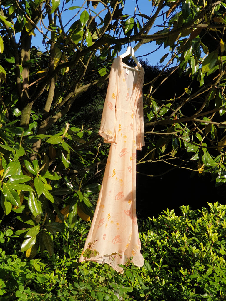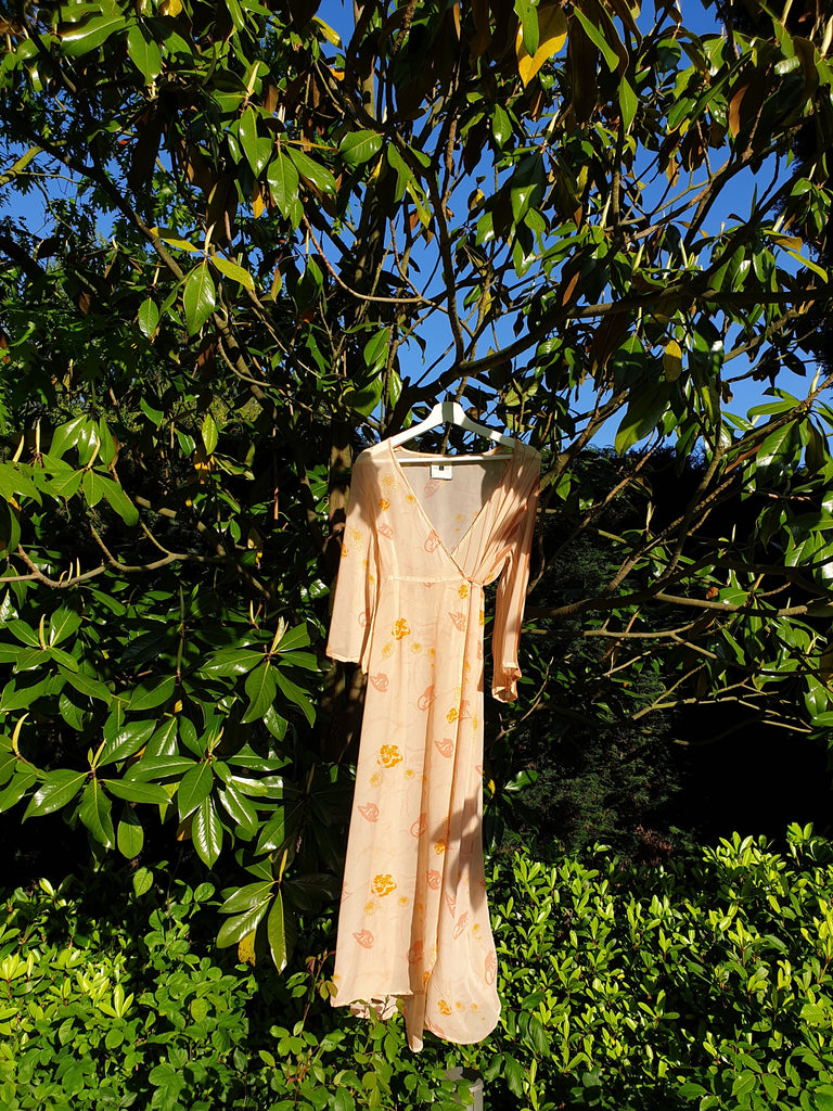 This is a wrap over dress printed in our Summer story, Monkeys & Marigold, combined with our Summer season Caramel Stripes. The tie ups on this dress are embellished with beads and pearls. It's a perfect pick for a Garden picnic, or a pool day. This dress comes with a cotton slip. It can be styled as a shrug, or as dress. If left open, it can be worn as a top.
