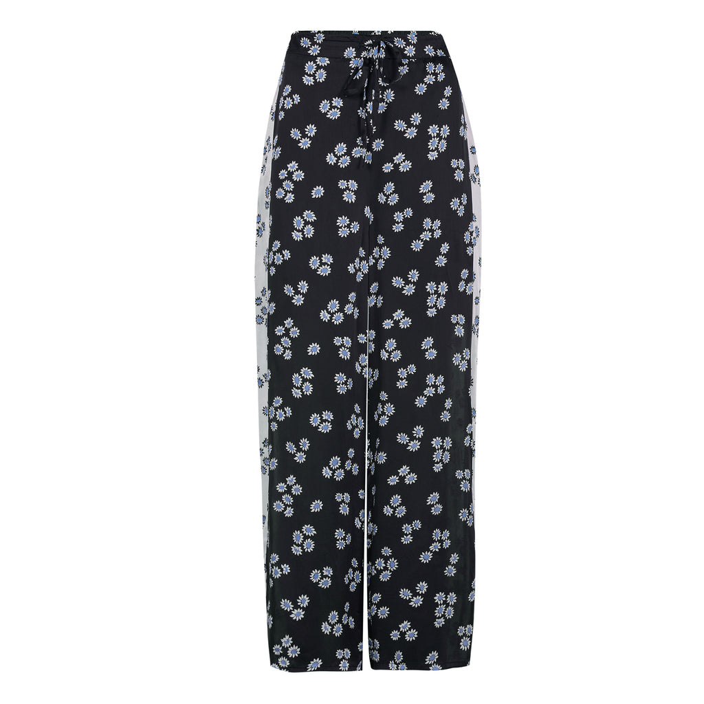 Monochrome pants designed in a wide leg silhouette, just as comfortable as it is flattering. High waisted elasticated waist band, and are printed with Monochrome Ditsy floral print, the running white cut and sew panel, gives it an edge over your regular wide leg pants. Pair with a classic white shirt, a jumper or a bralette. These pants are so versatile, they won't disappoint.