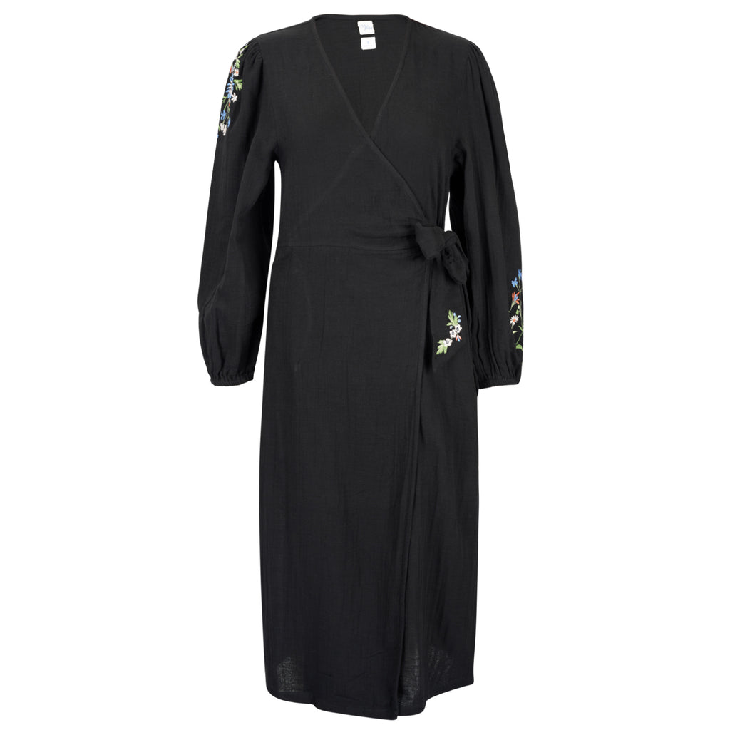 This dress is crafted in a cozy black double gauze fabric, marrying the softness of double gauze with the sophisticated charm of Lily of the Valley. The statement sleeves add a touch of drama, and delicate, scattered embroidery bestows a wabi-sabi feeling, where imperfection becomes artistry.Whether you're dressing for a special occasion or simply enjoying a day out, the Lily of the Valley Wrap Dress is a versatile choice that combines elegance, comfort, and a touch of artistic flair. It allows you to express your individuality while embracing the art of imperfection.Â